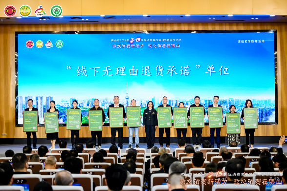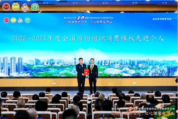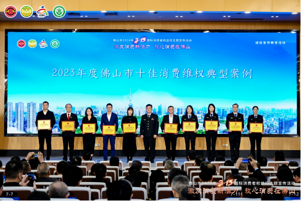 活動現(xiàn)場還為2023年度佛山市及市場監(jiān)管系統(tǒng)的十佳消費維權(quán)典型案例承辦單位、十佳消費維權(quán)辦理能手,“放心消費承諾”“線下無理由退貨承諾”單位,以及市級消費教育基地單位等授牌。