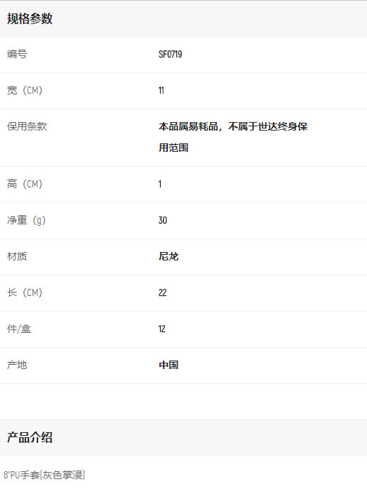產(chǎn)品名字:世達(dá)8"PU手套(灰色掌浸)
