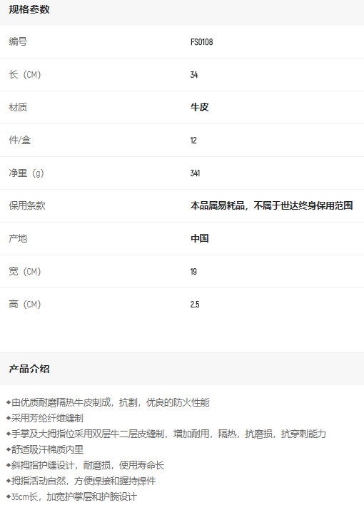 首頁>產品中心>手部防護>手套>世達斜指焊接手套XL