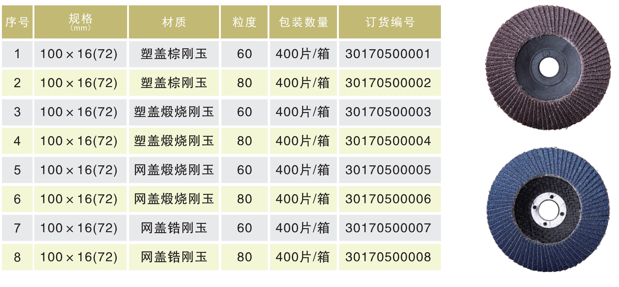 產(chǎn)品名字:東成百葉片塑蓋煅燒鋼玉#80# 100x16x72
